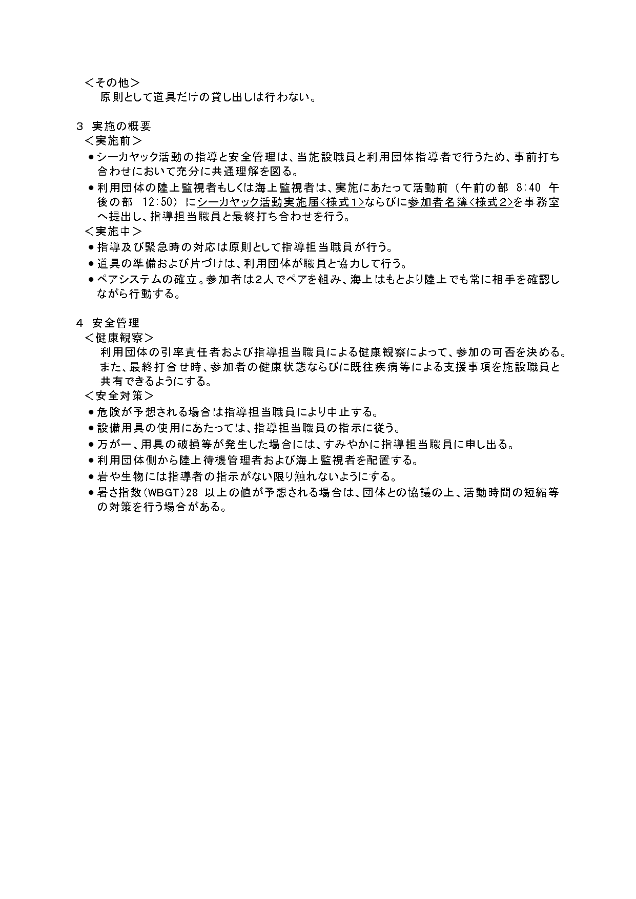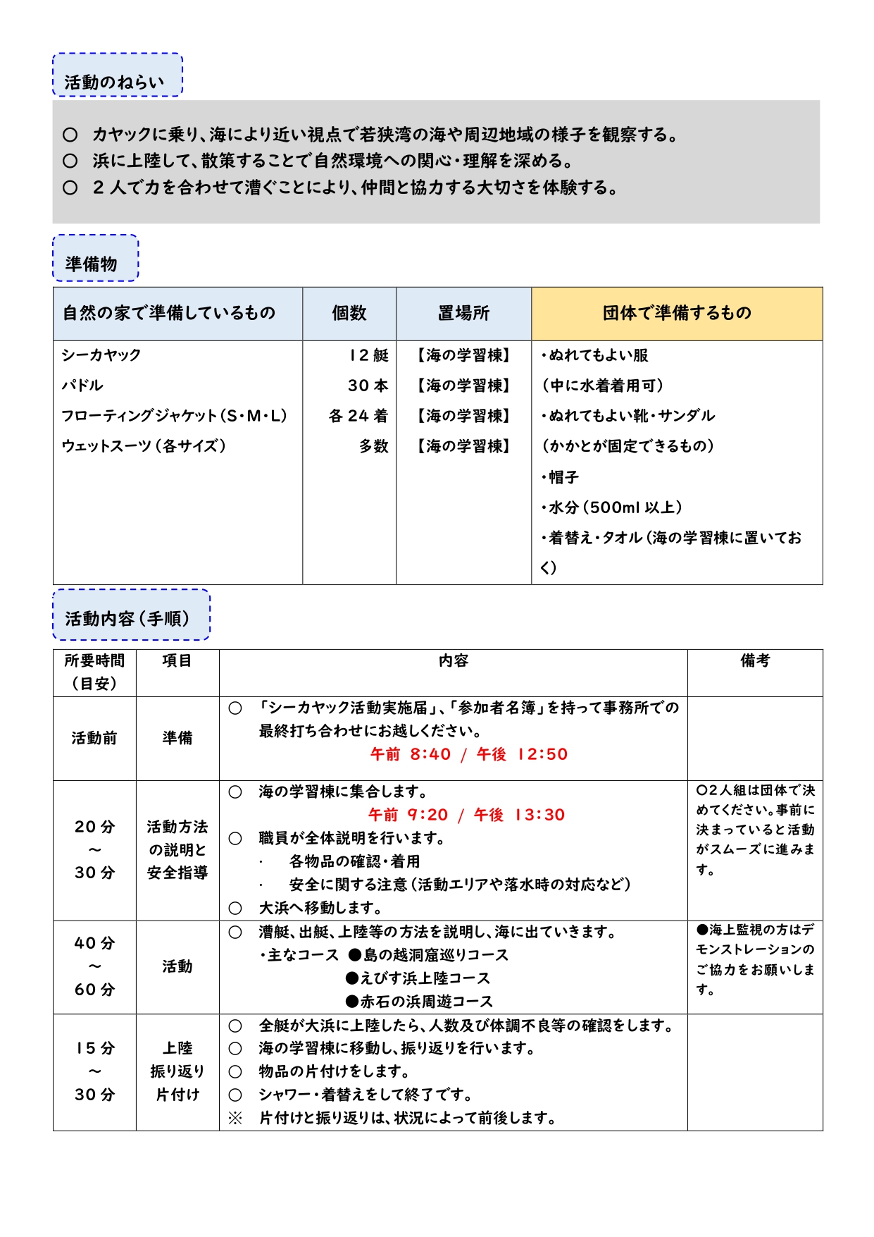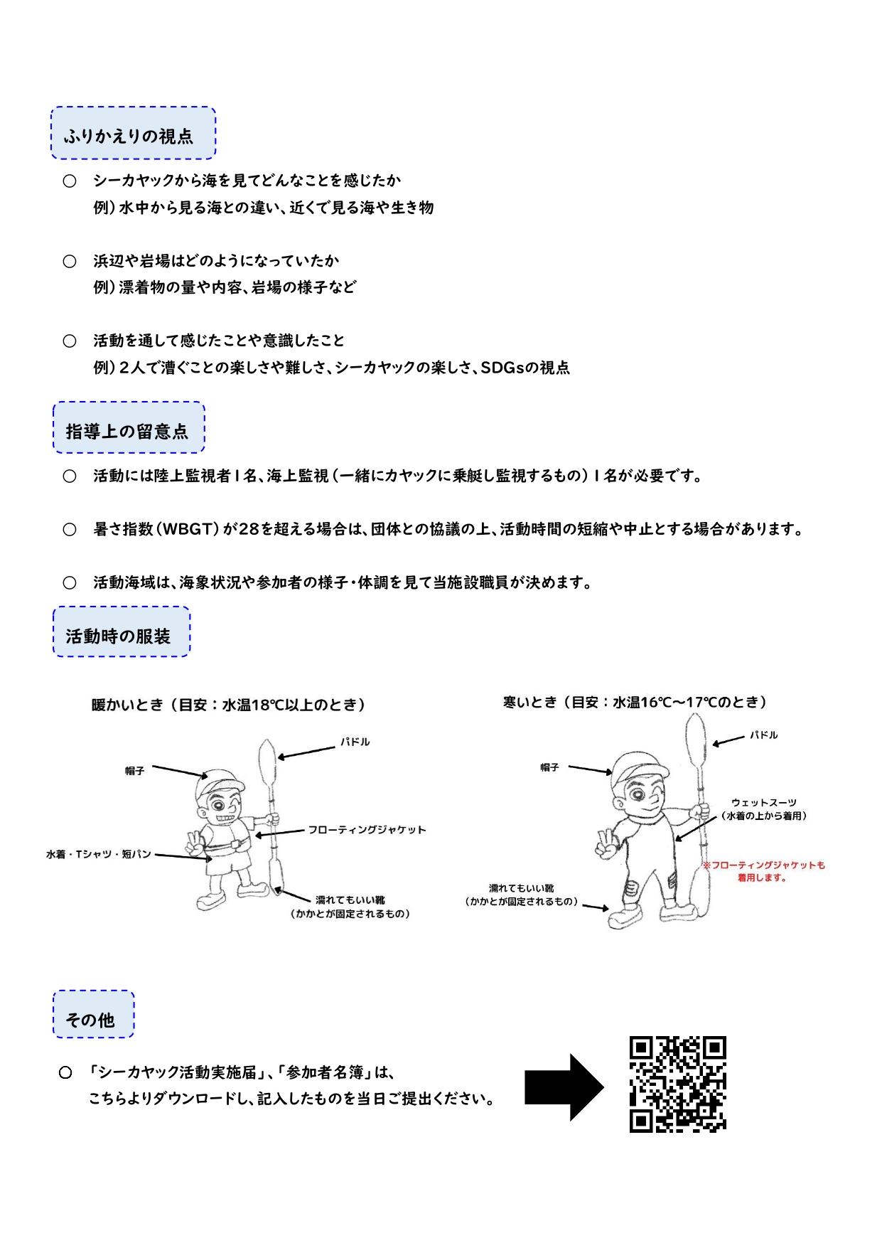 ※必ず「シーカヤック活動 実施要項」をご一読の上、実施届の記入を行ってください。