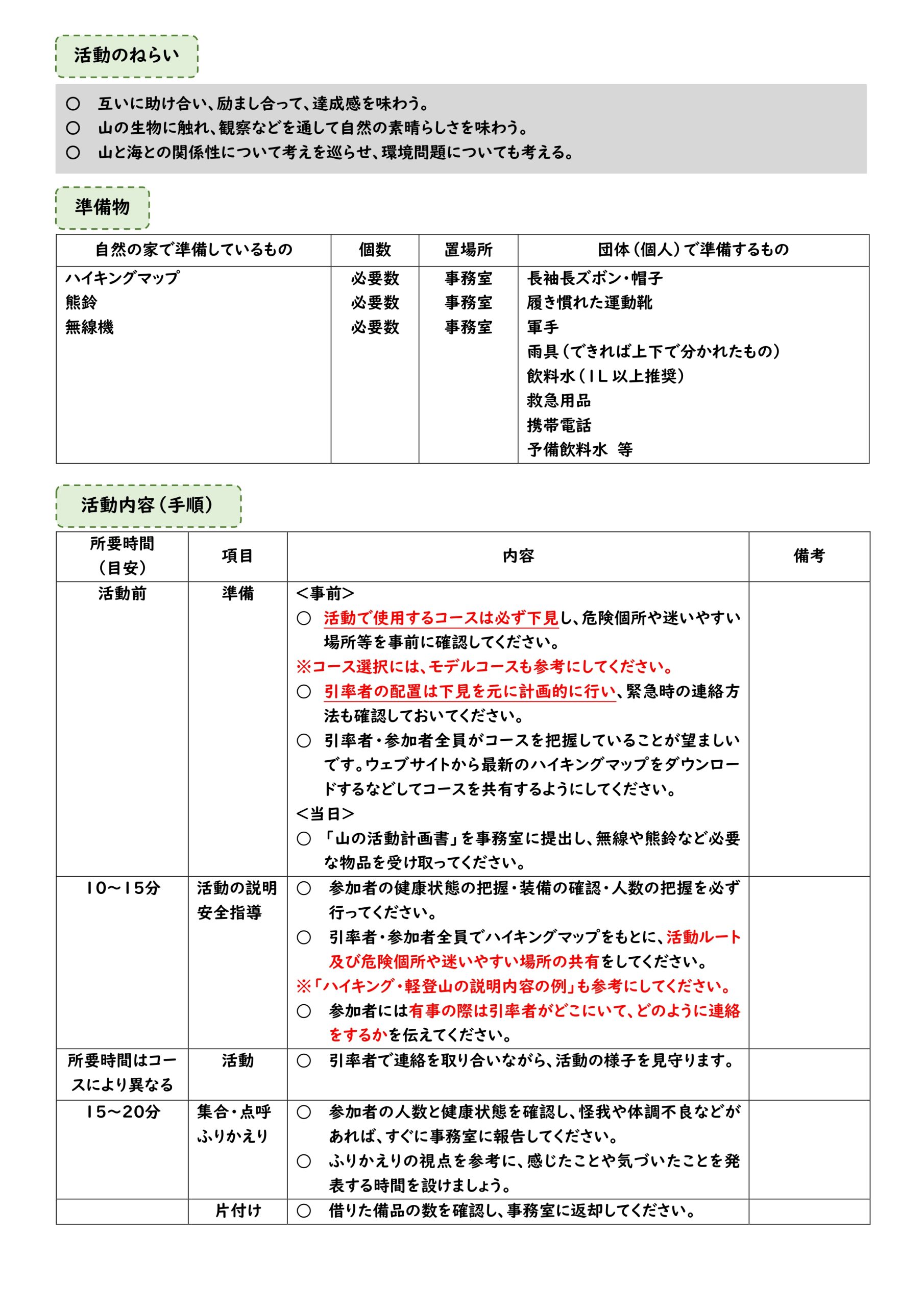 ※安全に活動するために事前の下見をお願いします。